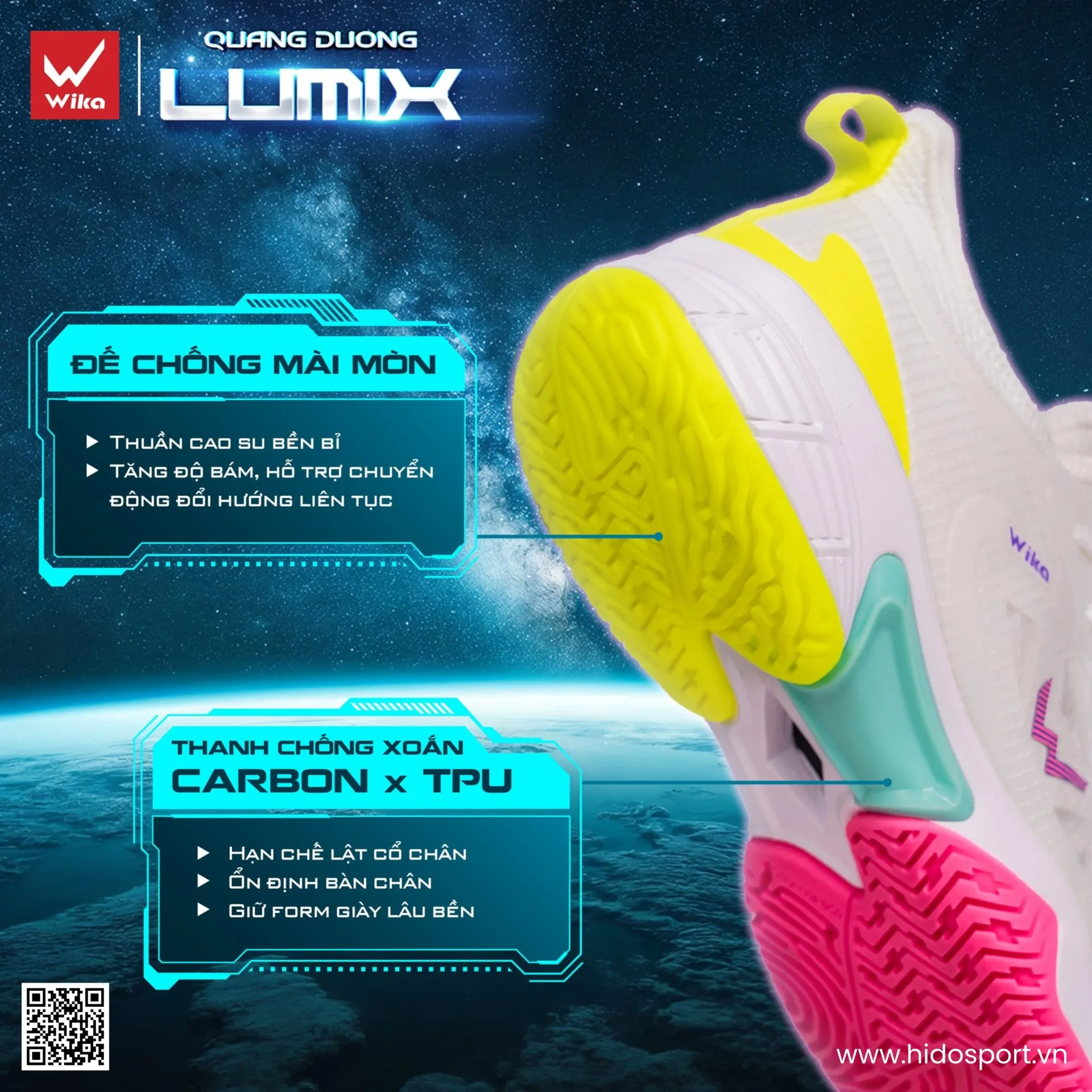 Công nghệ nổi bật trên Giày Pickleball Quang Dương Wika Lumix Chính Hãng: