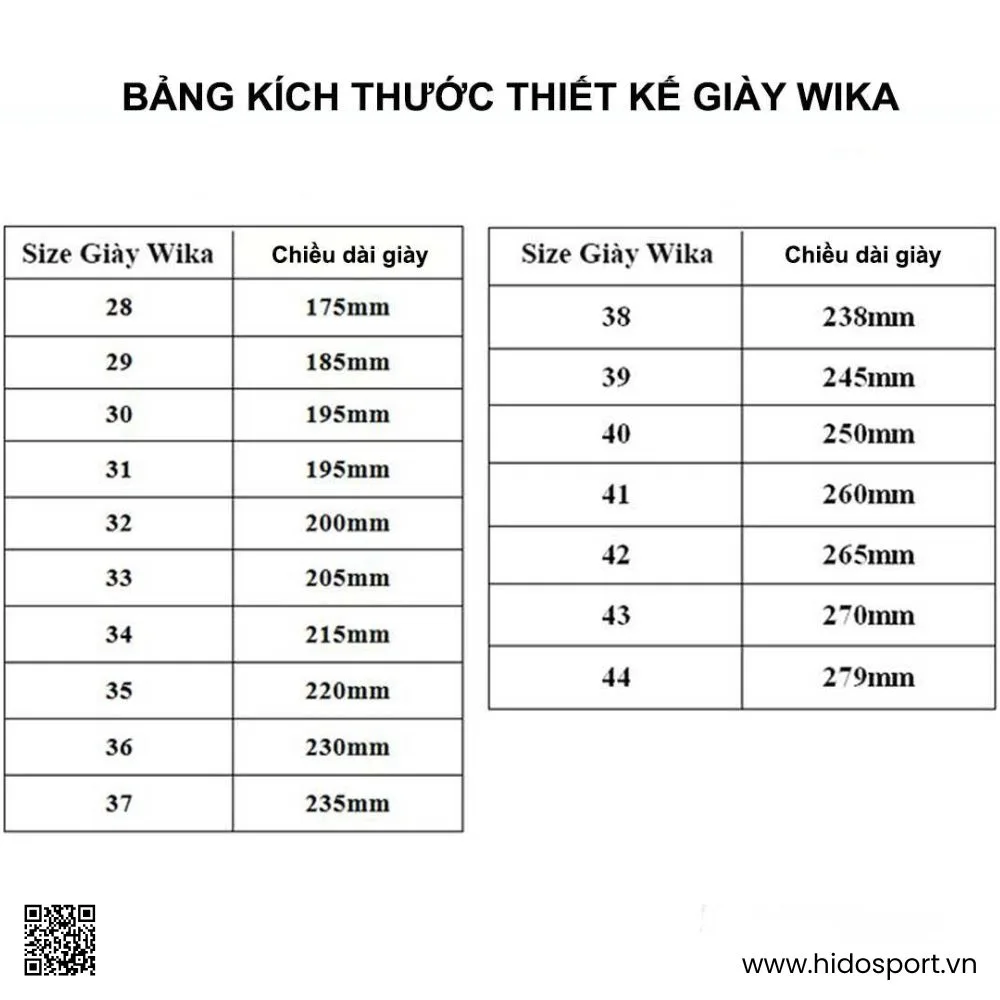 Bảng Size Giày Pickleball Quang Dương Wika Lumix Chính Hãng