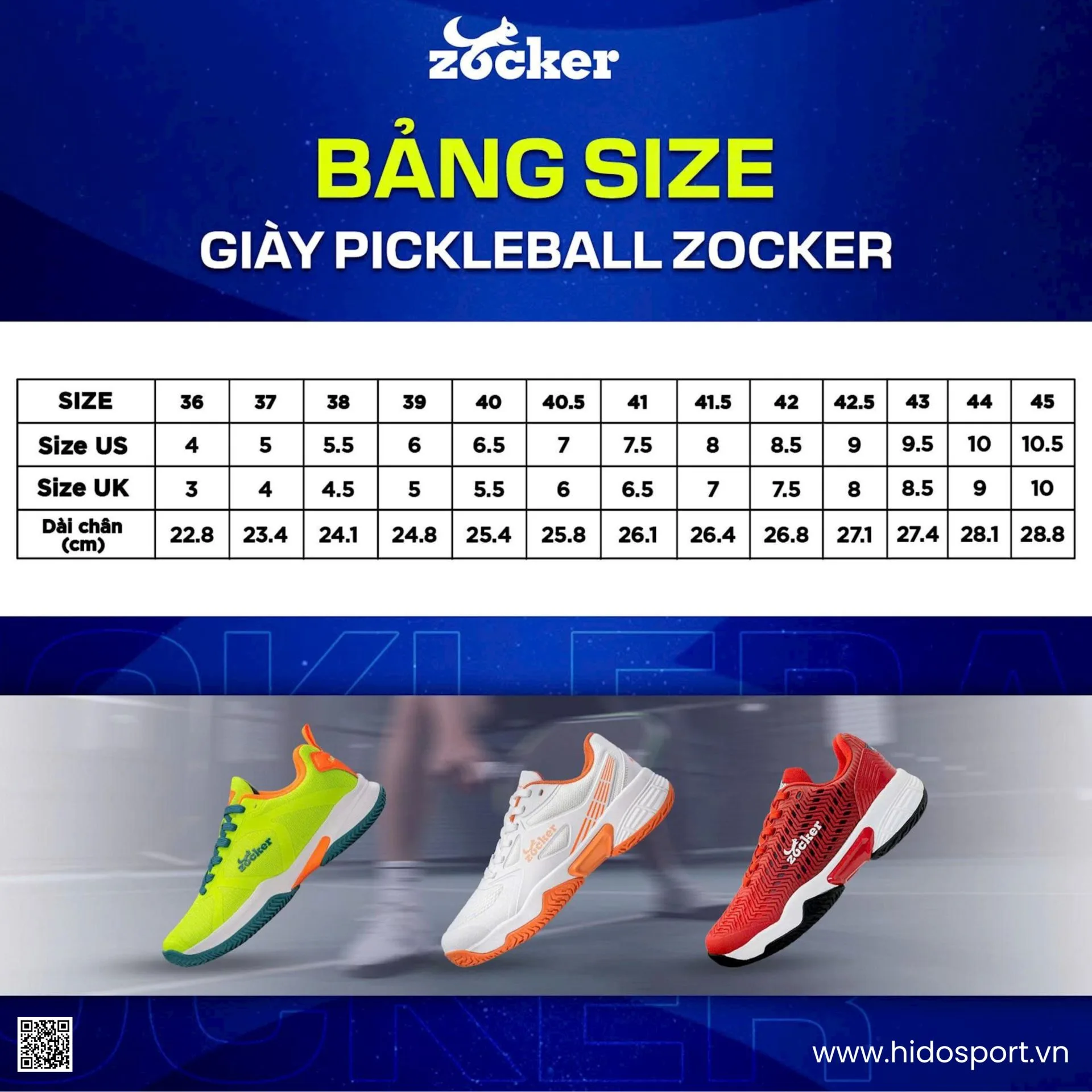 Hướng Dẫn Chọn Size Giày Pickleball Zocker Aspire Speed
