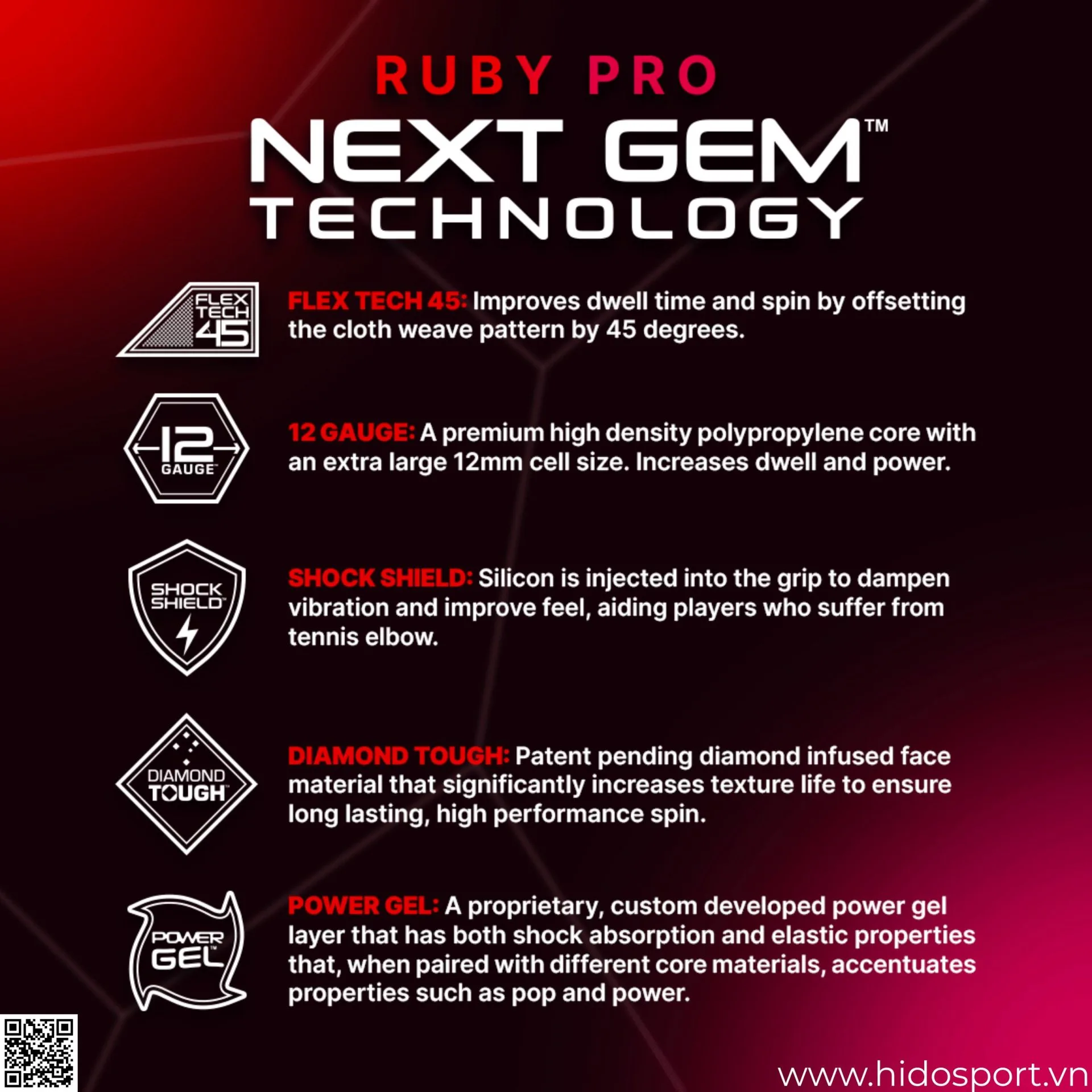 Bề mặt này được tích hợp các hạt kim cương thật, giúp kéo dài đáng kể tuổi thọ của độ nhám, đảm bảo khả năng tạo spin đỉnh cao được duy trì qua từng trận đấu.