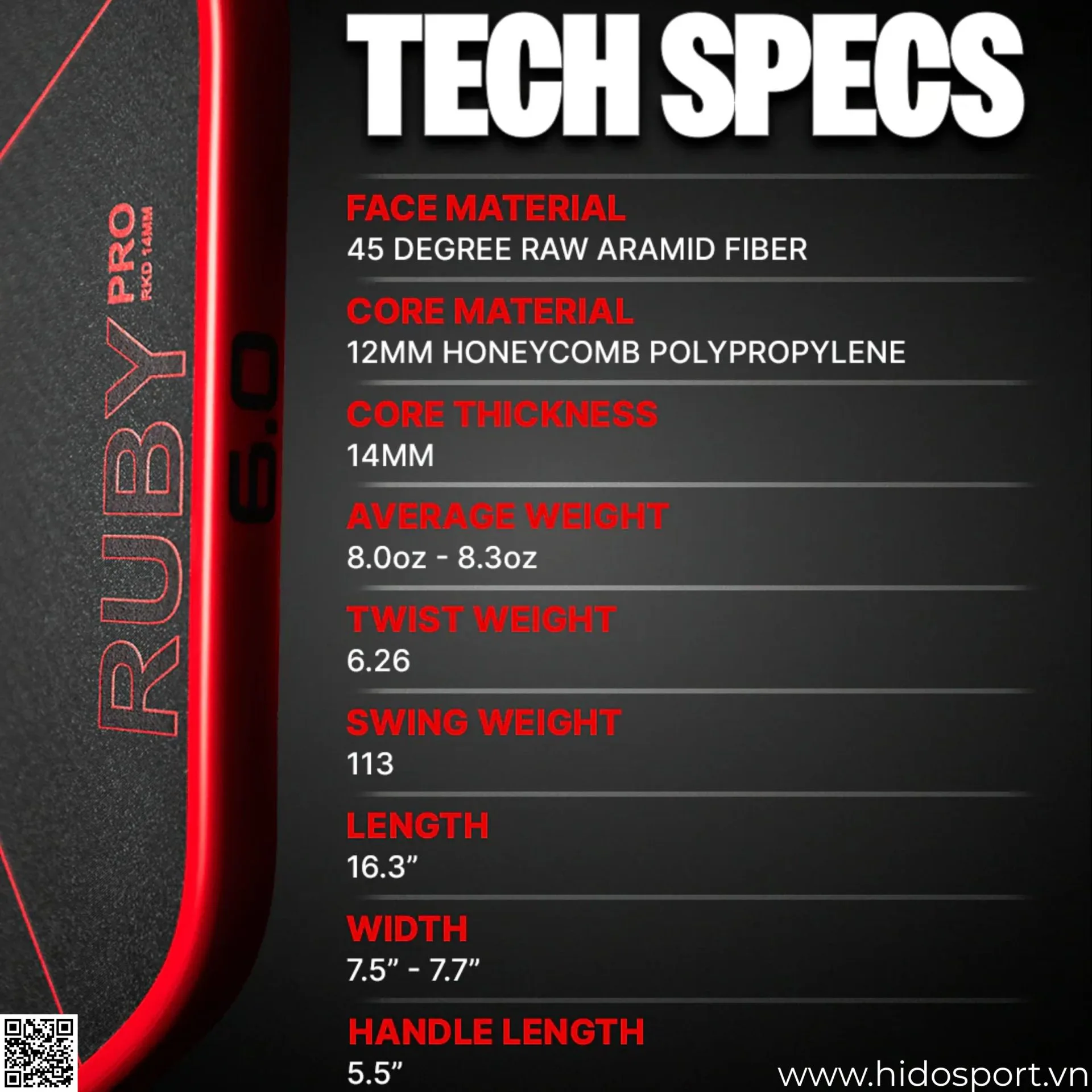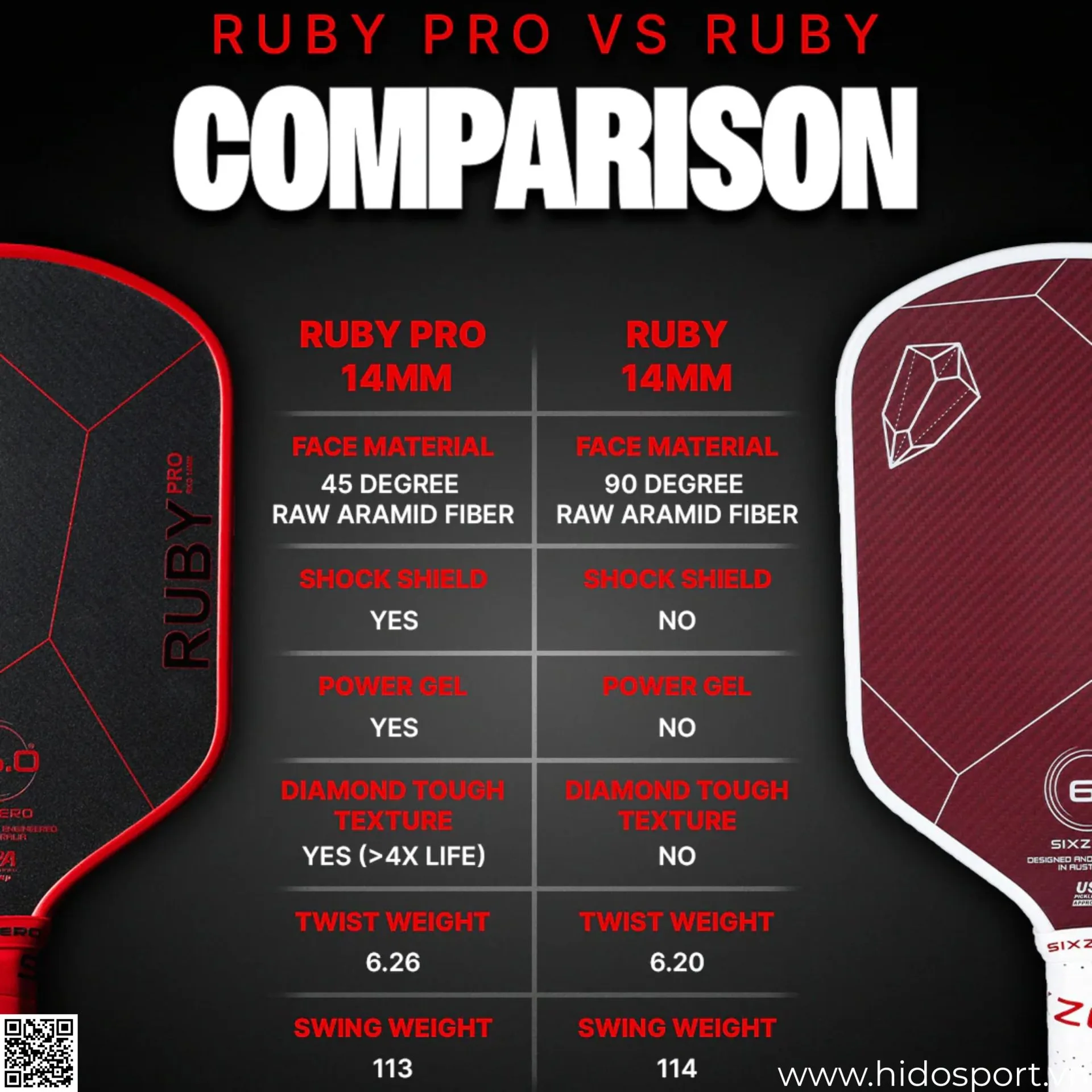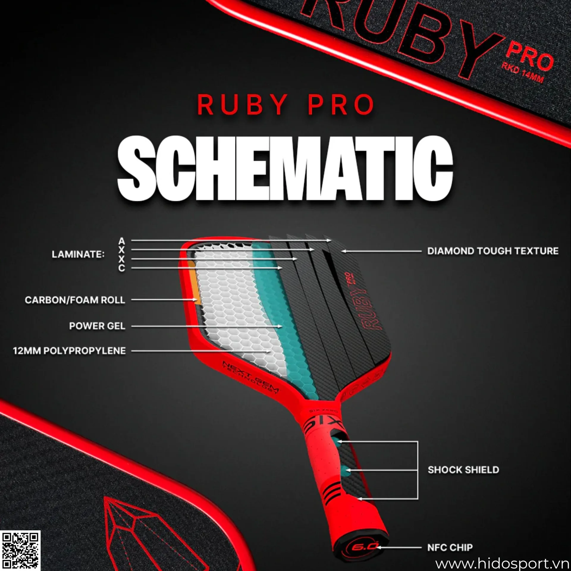 Mua Ngay Vợt Pickleball Six Zero Ruby Pro 14mm Tại Hido Sport: