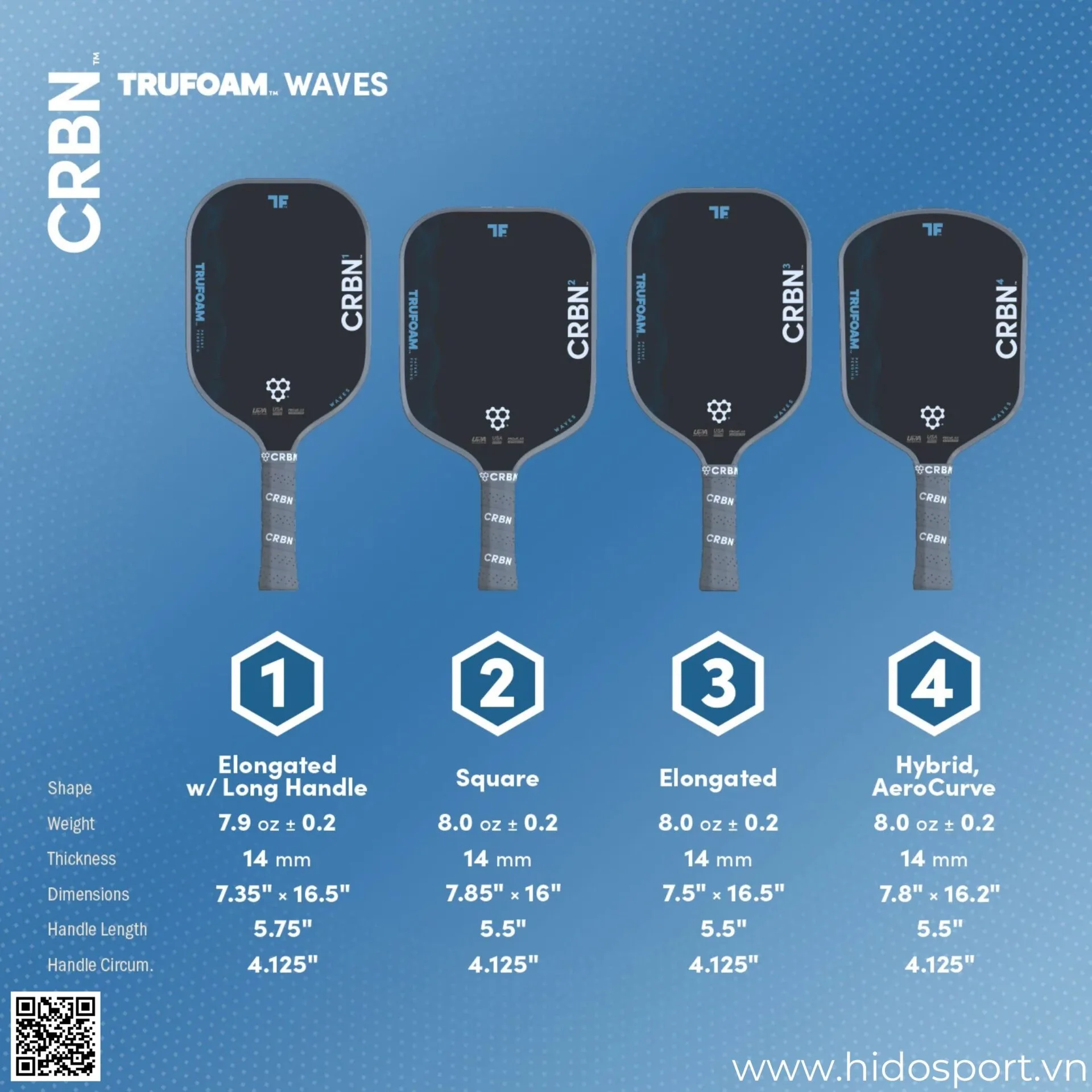 Thông Số Kỹ Thuật Vợt Pickleball CRBN⁴ TruFoam Waves 2.0 Chính Hãng 14mm:
