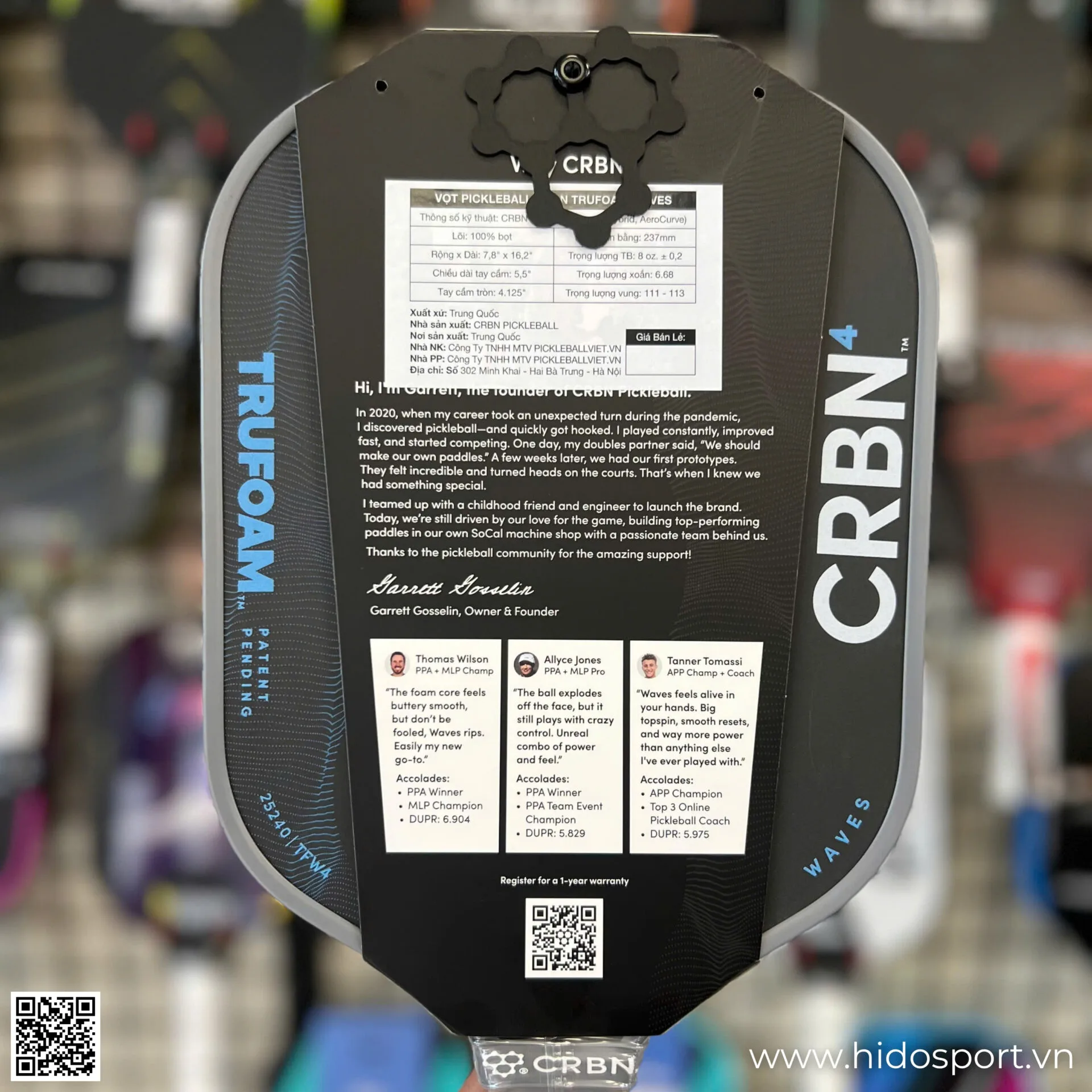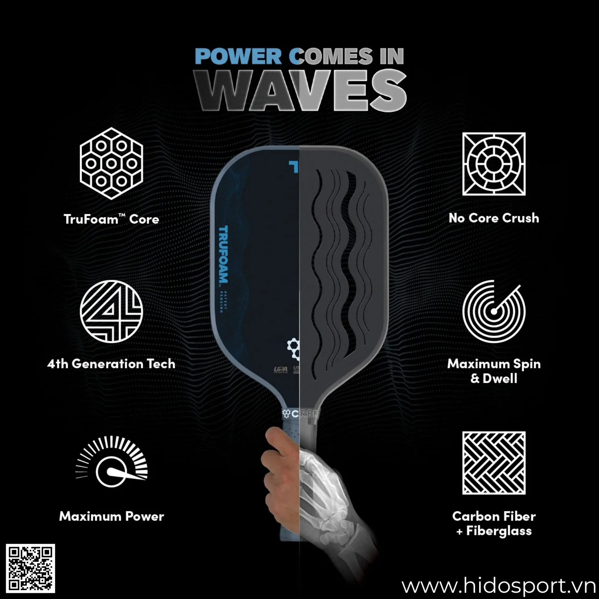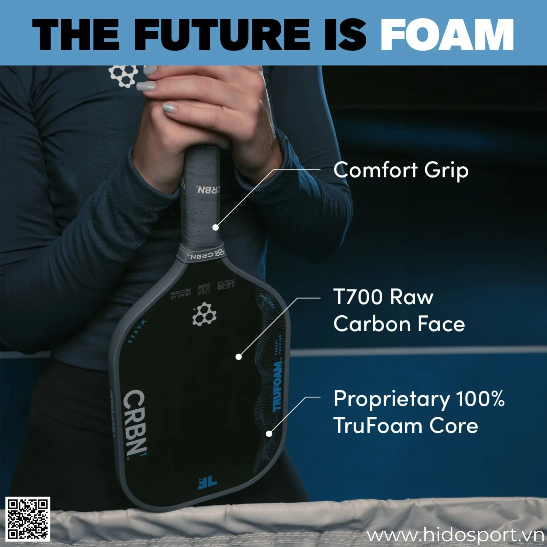 Mua Ngay Vợt Pickleball CRBN⁴ TruFoam Waves 2.0 (Hybrid, AeroCurve) Chính Hãng 14mm Tại Hido Sport: