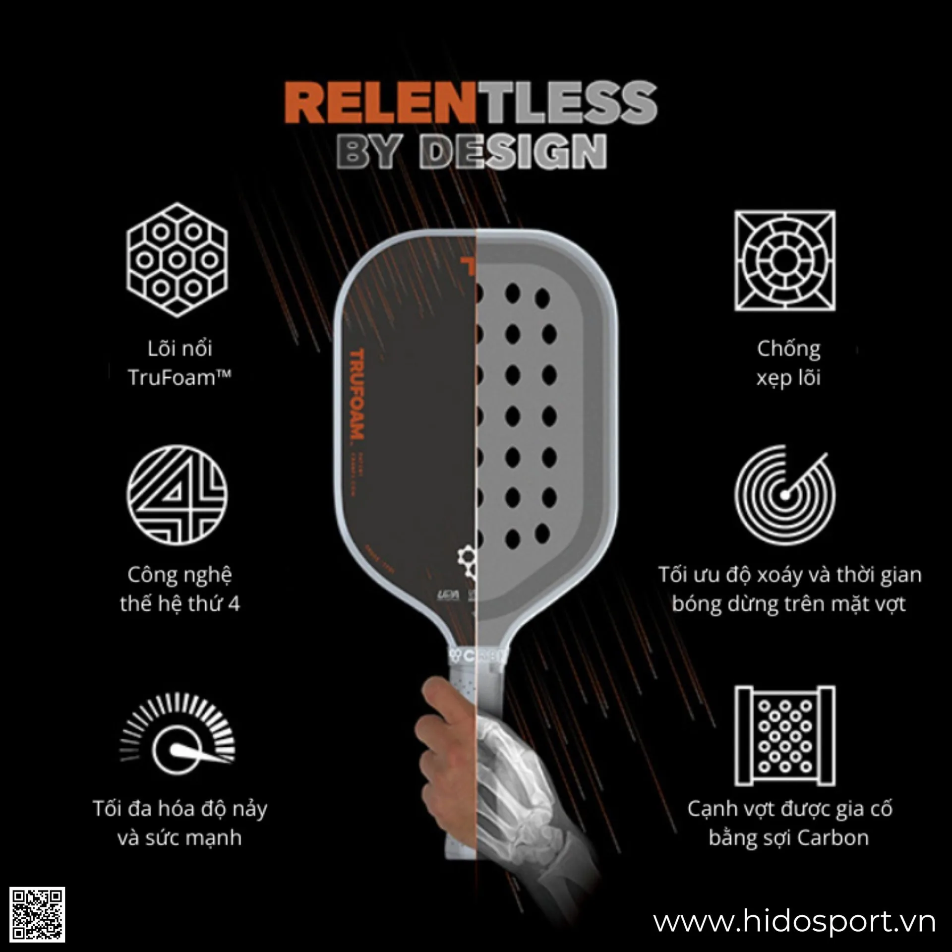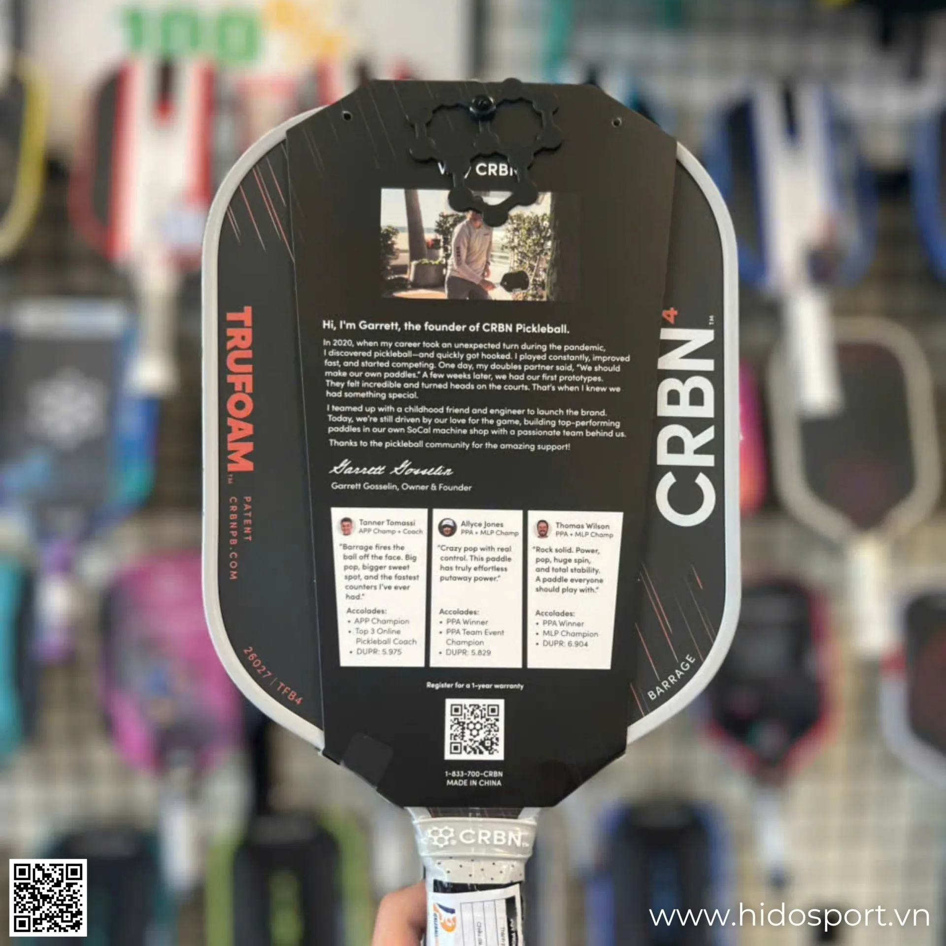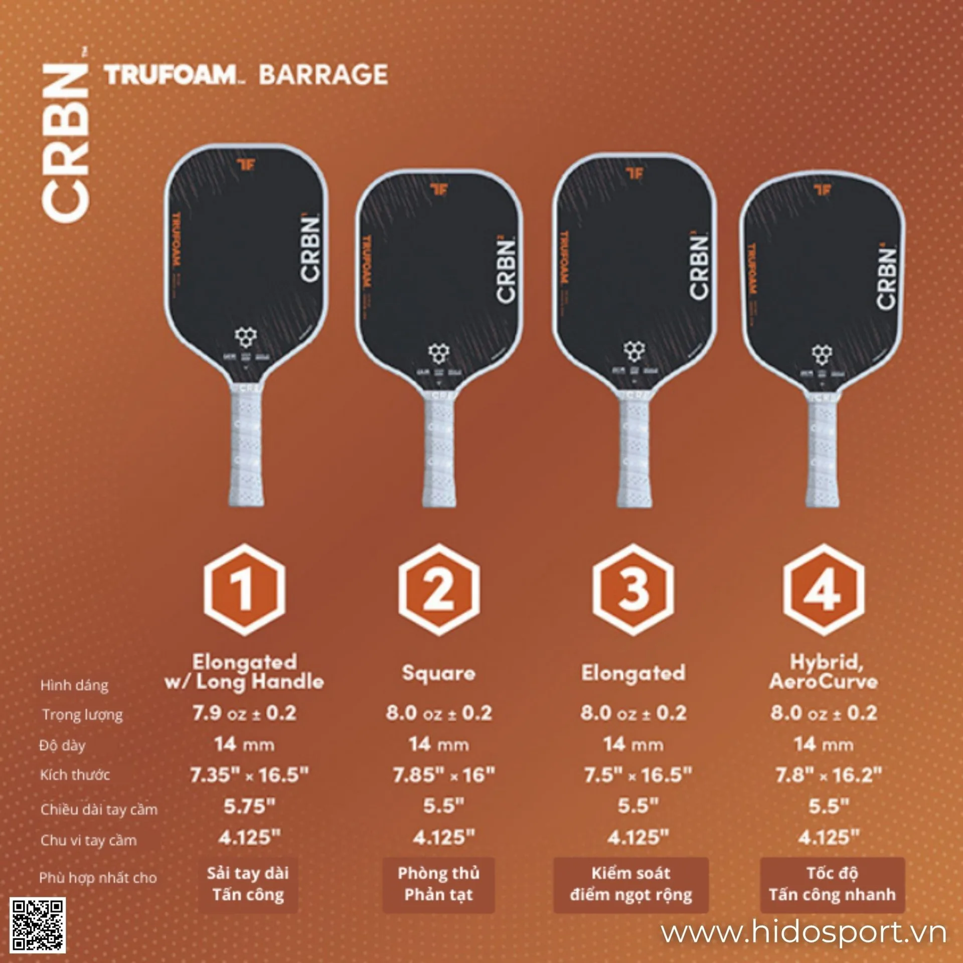👉 Mua ngay vợt pickleball CRBN TruFoam Barrage chính hãng tại HIDO SPORT để được tư vấn chọn đúng form và hỗ trợ in vợt miễn phí.