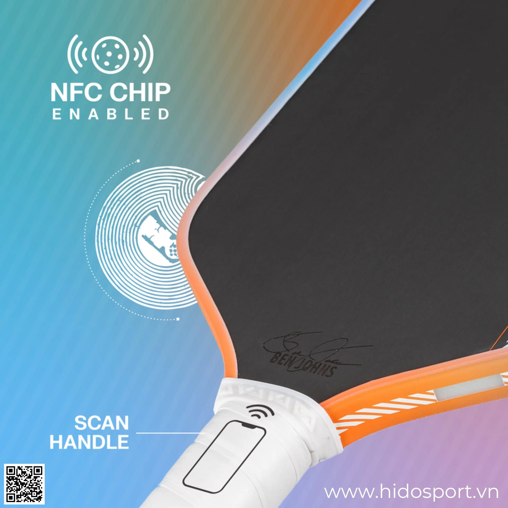 - Chữ ký Ben Johns in trực tiếp trên mặt vợt