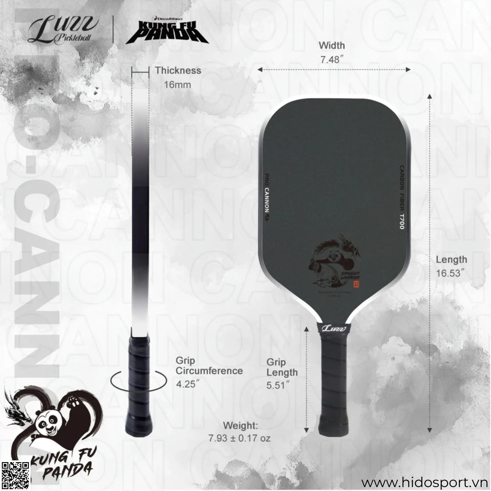 Thông số kỹ thuật Vợt Pickleball Luzz Kung Fu Panda