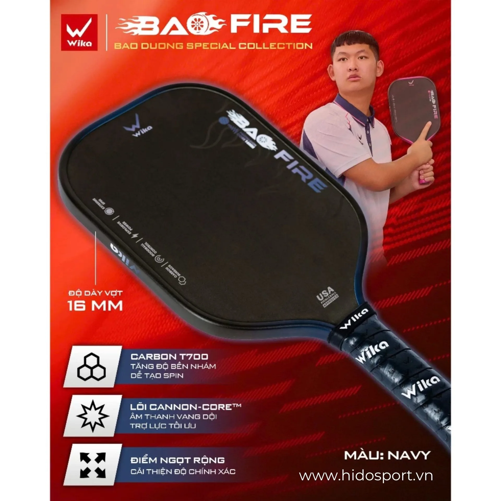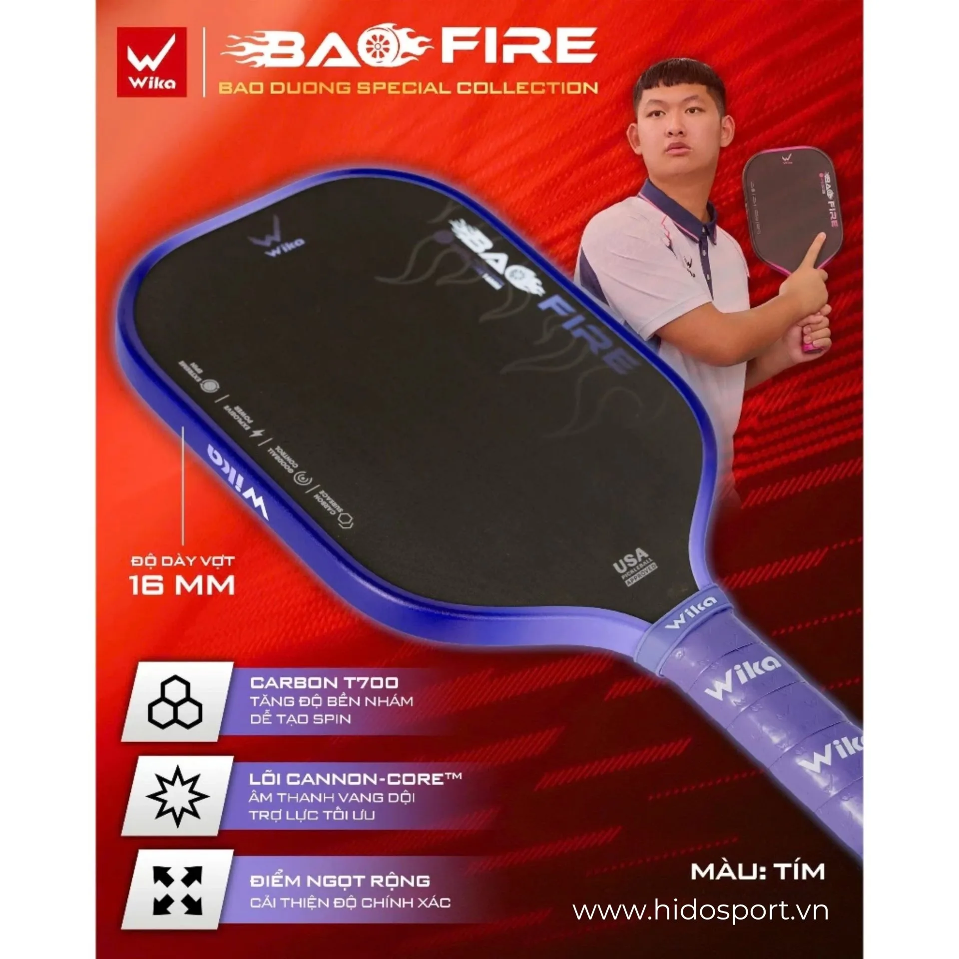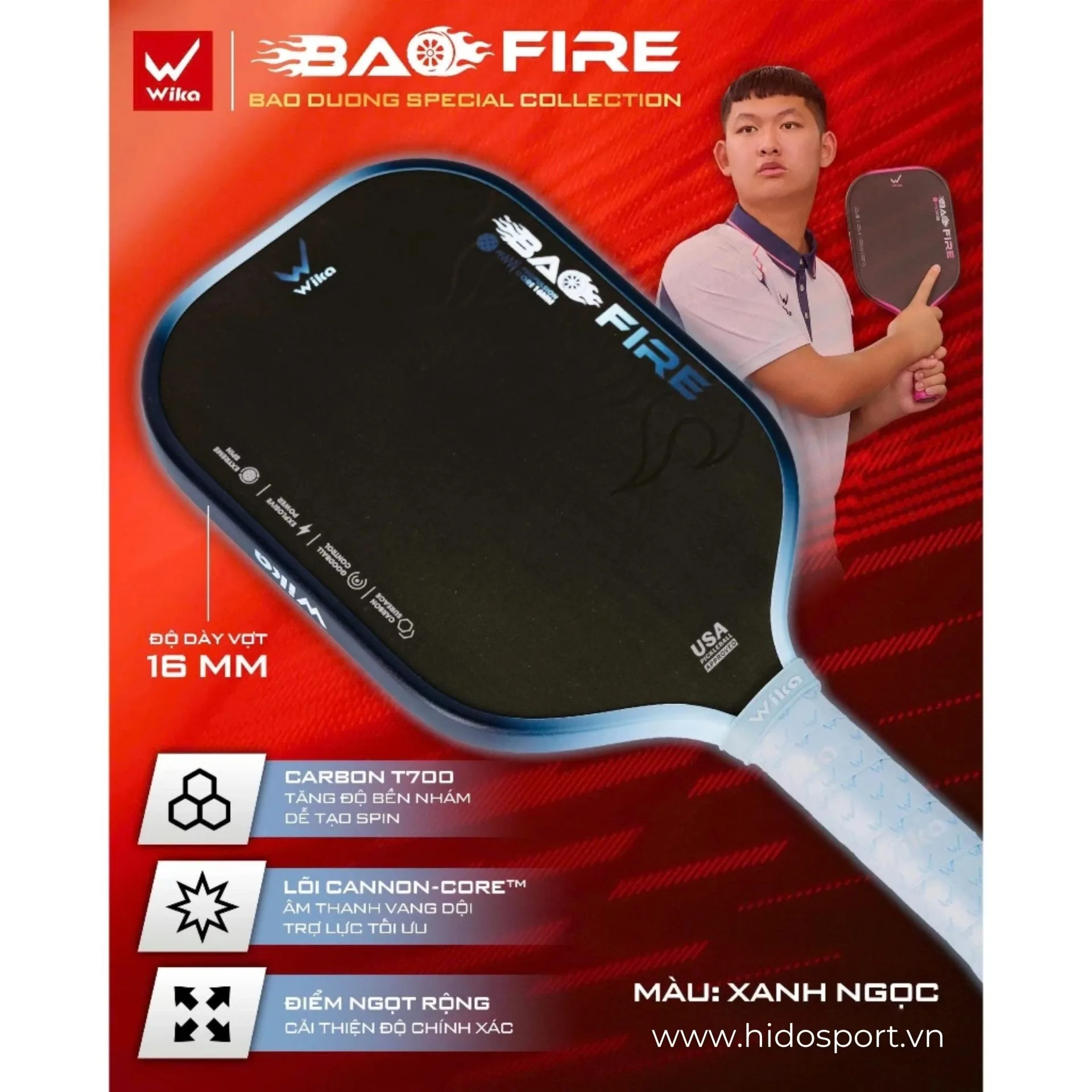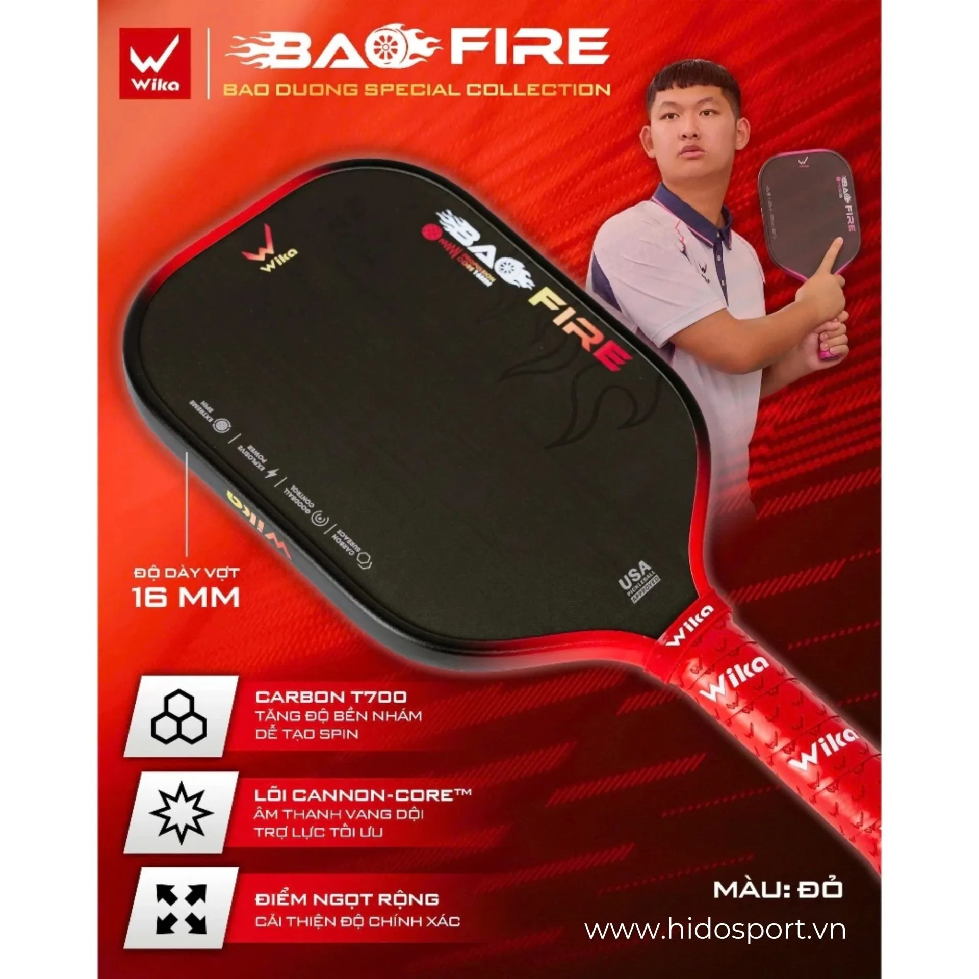 Thông Số Kỹ Thuật Chính Vợt Pickleball Wika Bao Fire