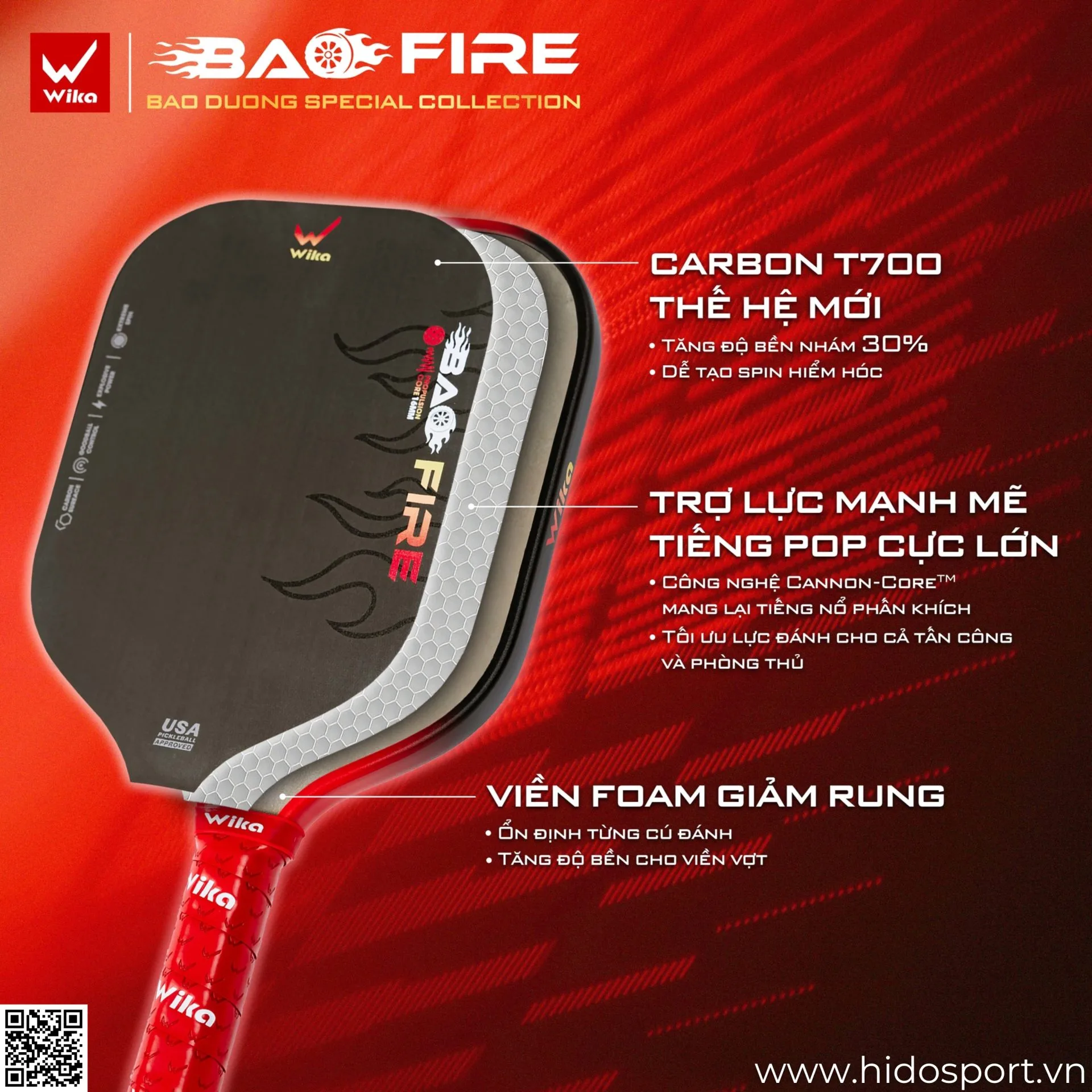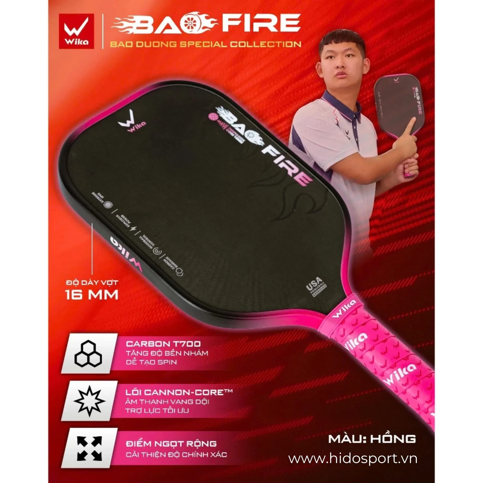 Giới Thiệu BST 5 Màu Vợt Pickleball Wika Bao Fire 2025 – Phiên Bản Đặc Biệt Kết Hợp Cùng Bảo Dương