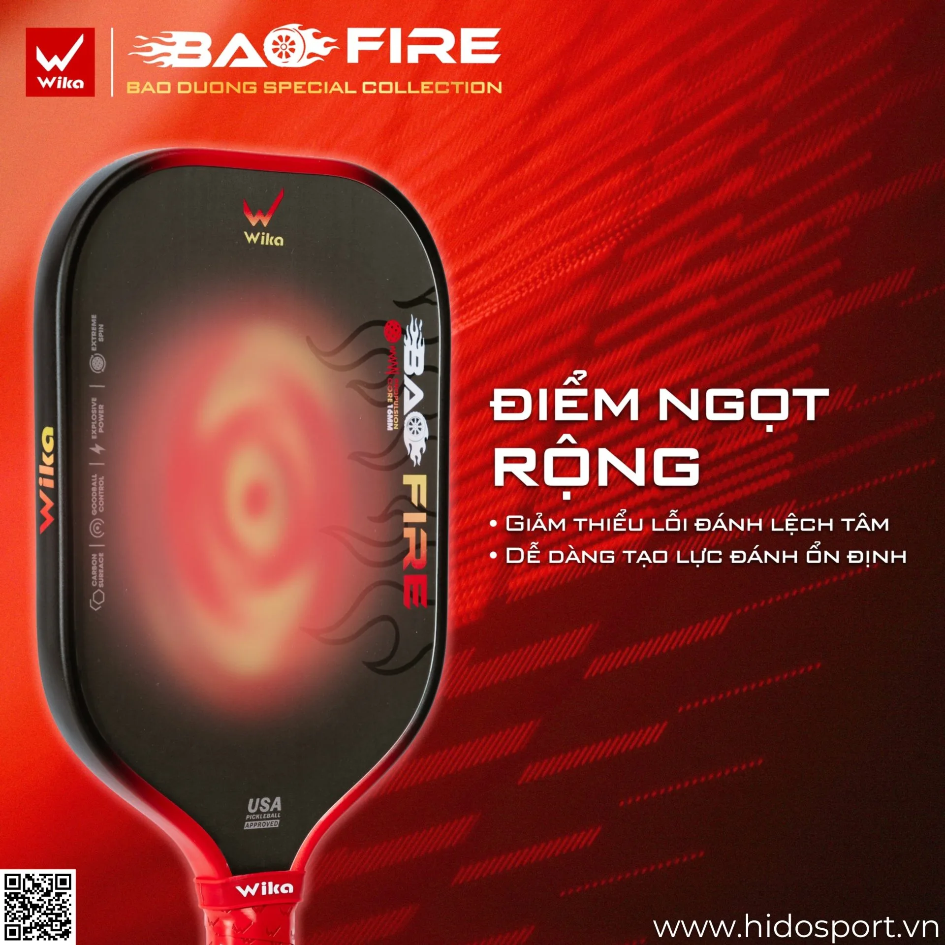Mua Ngay Vợt Pickleball Wika Bao Fire Chính Hãng Tại Hido Sport